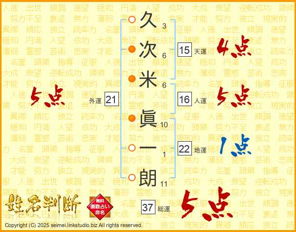 久次米眞一朗さんの総運は37画の5点!