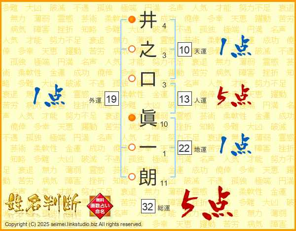 井之口眞一朗さんの総運は32画の5点!