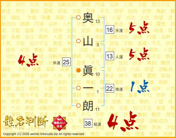 奥山眞一朗さんの総運は38画の4点!