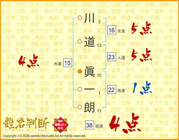 川道眞一朗さんの総運は38画の4点!