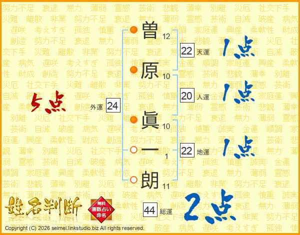 曽原眞一朗さんの総運は44画の2点!