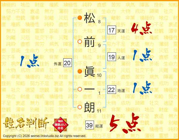 松前眞一朗さんの総運は39画の5点!