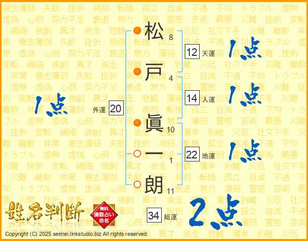 松(8画)戸(4画) 眞(10画)一(1画)朗(11画)