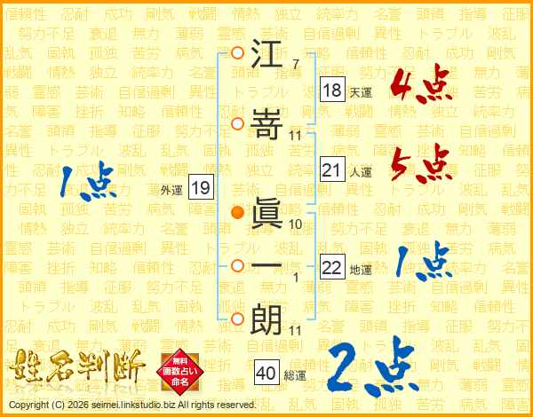 江嵜眞一朗さんの人運は21画の5点!