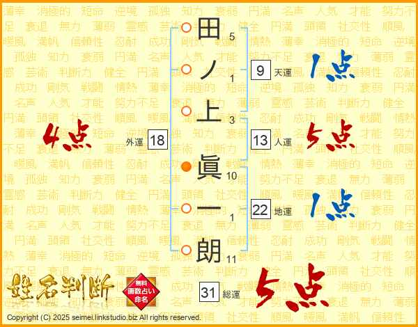 田ノ上眞一朗さんの総運は31画の5点!