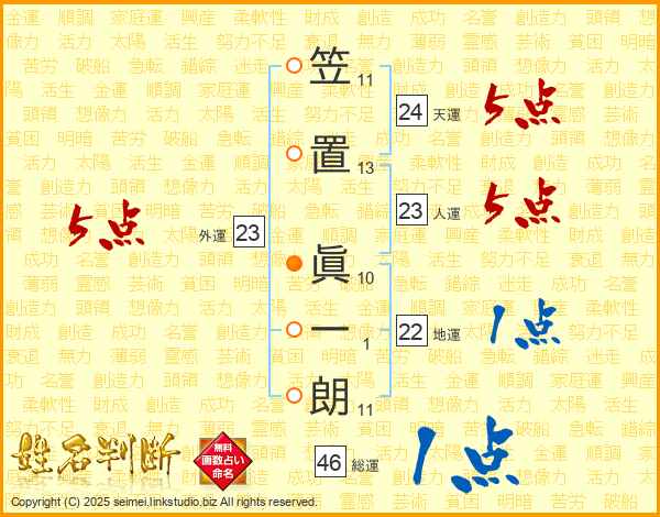 笠置眞一朗さんの天運は24画の5点!