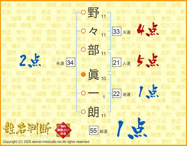 野々部眞一朗さんの天運は33画の4点!