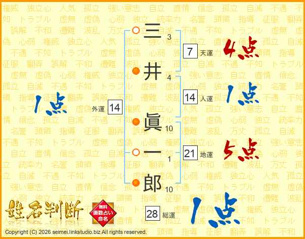 三井眞一郎さんの天運は7画の4点!