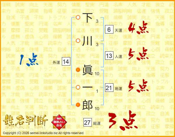 下川眞一郎さんの総運は27画の3点!