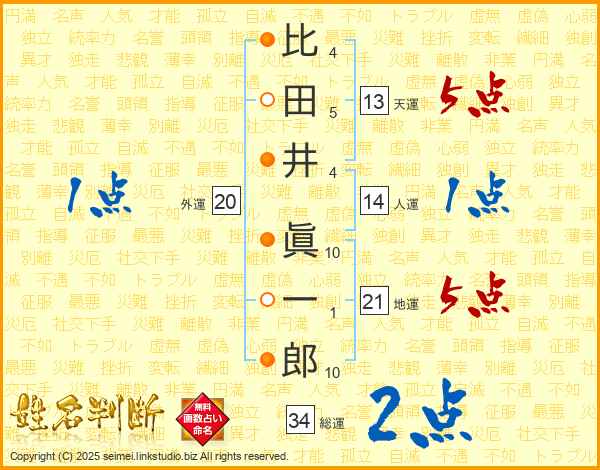 比田井眞一郎さんの天運は13画の5点!