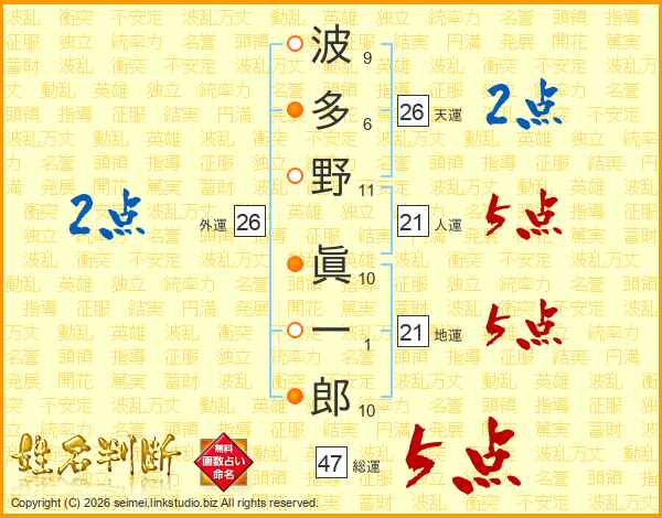 波多野眞一郎さんの総運は47画の5点!
