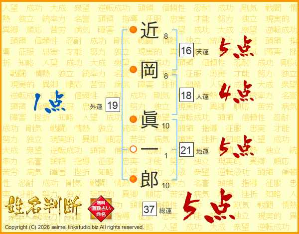 近岡眞一郎さんの総運は37画の5点!