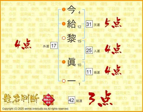 今給黎眞一さんの人運は25画の4点!