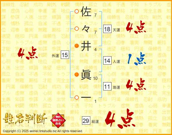 佐(7画)々(7画)井(4画) 眞(10画)一(1画)