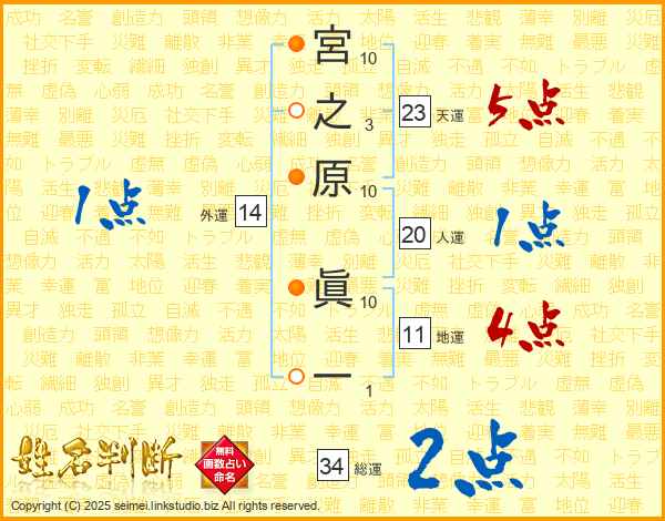 宮之原眞一さんの総運は34画の2点!