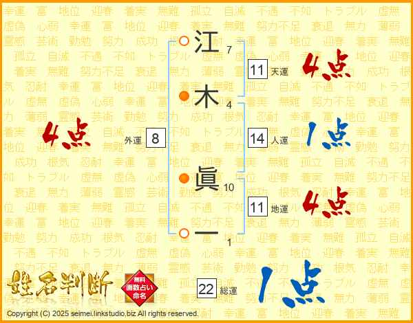 江木眞一さんの天運は11画の4点!