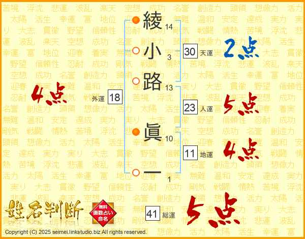 綾小路眞一さんの外運は18画の4点!