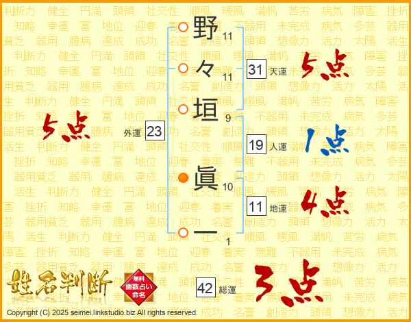 野々垣眞一さんの総運は42画の3点!