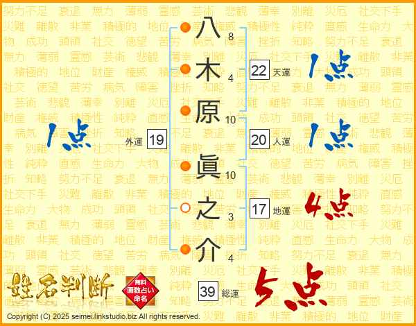 八(8画)木(4画)原(10画) 眞(10画)之(3画)介(4画)
