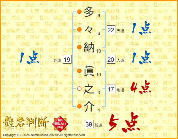 多(6画)々(6画)納(10画) 眞(10画)之(3画)介(4画)