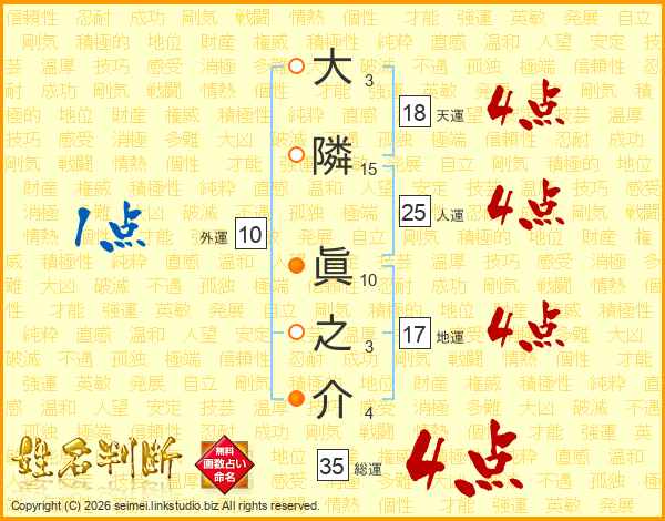 大(3画)隣(15画) 眞(10画)之(3画)介(4画)