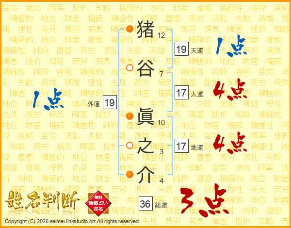 猪谷眞之介さんの人運は17画の4点!