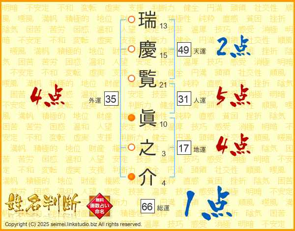 瑞慶覧眞之介さんの総運は66画の1点!