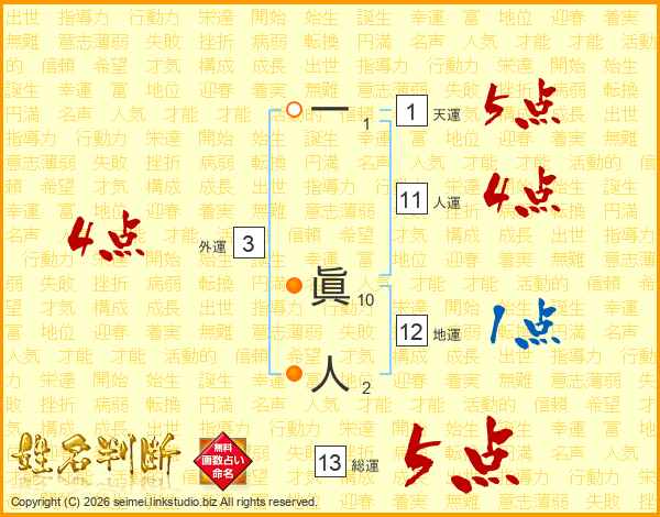 一眞人さんの総運は13画の5点!