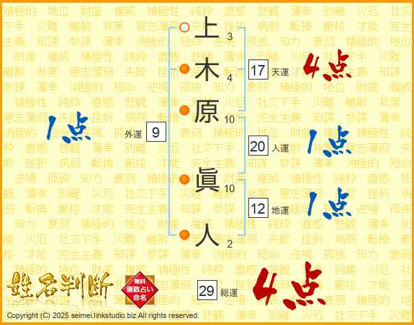 上(3画)木(4画)原(10画) 眞(10画)人(2画)