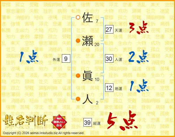佐瀬眞人さんの総運は39画の5点!