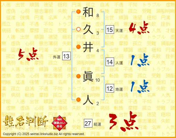和(8画)久(3画)井(4画) 眞(10画)人(2画)