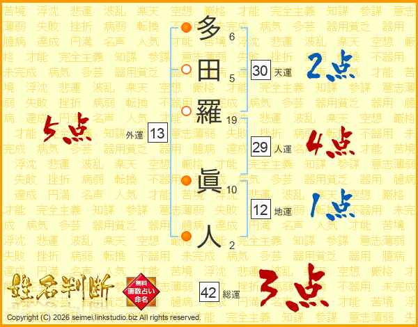 多田羅眞人さんの総運は42画の3点!
