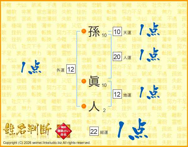 孫眞人さんの総運は22画の1点!