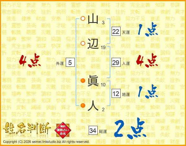 山辺眞人さんの総運は34画の2点!