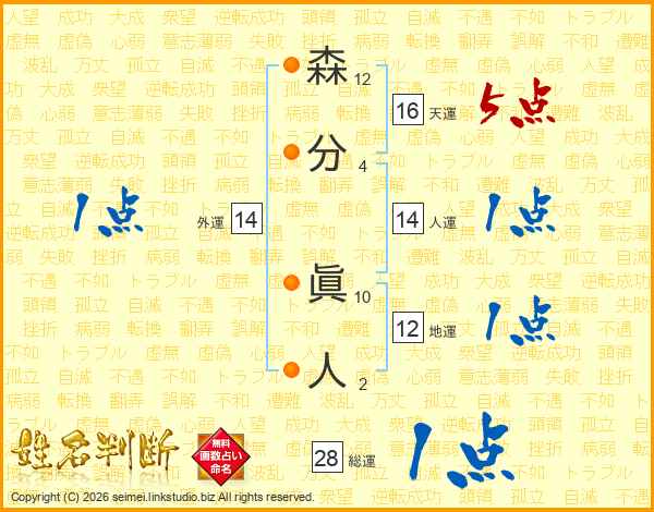 森分眞人さんの総運は28画の1点!