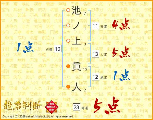 池ノ上眞人さんの総運は23画の5点!
