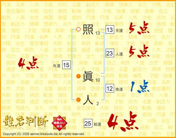 照眞人さんの天運は13画の5点!