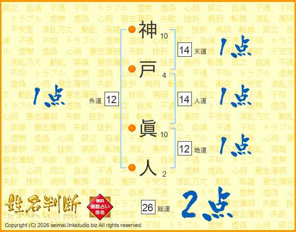 神戸眞人さんの総運は26画の2点!