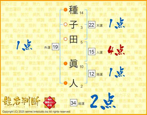 種(14画)子(3画)田(5画) 眞(10画)人(2画)