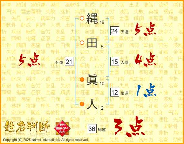 縄田眞人さんの天運は24画の5点!