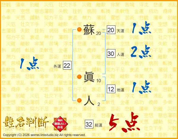 蘇眞人さんの総運は32画の5点!