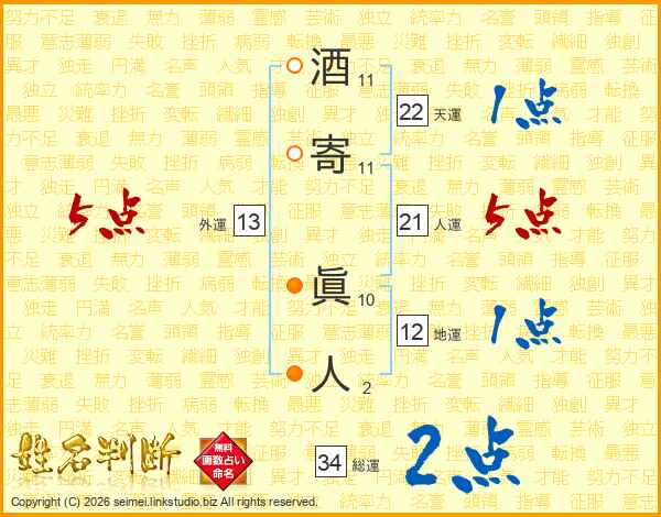 酒(11画)寄(11画) 眞(10画)人(2画)