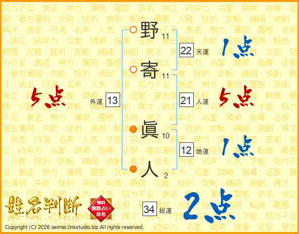 野寄眞人さんの人運は21画の5点!