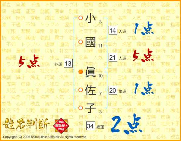 小國眞佐子さんの人運は21画の5点!