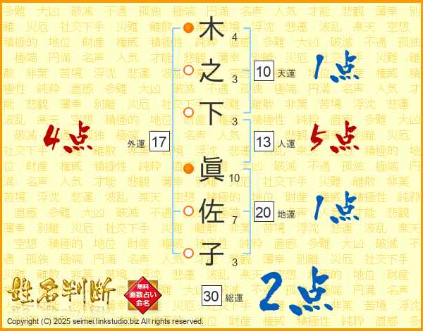 木之下眞佐子さんの総運は30画の2点!