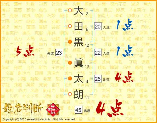 大田黒眞太朗さんの総運は45画の4点!