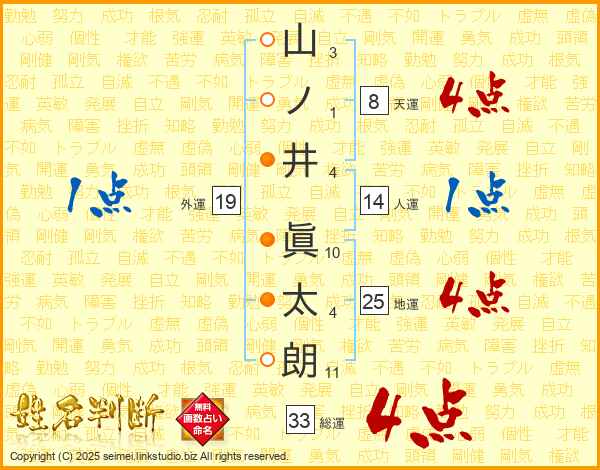 山ノ井眞太朗さんの総運は33画の4点!
