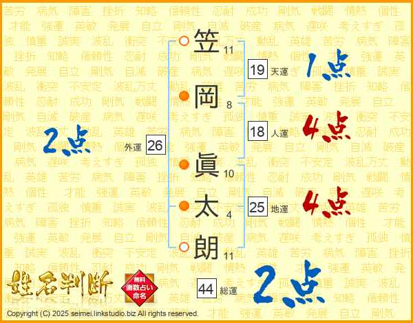笠岡眞太朗さんの地運は25画の4点!