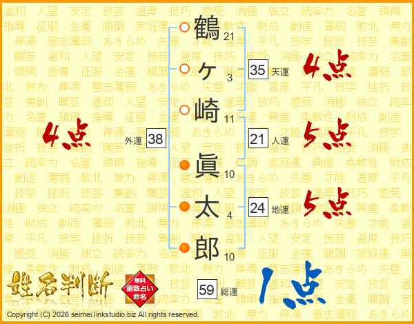 鶴ヶ崎眞太郎さんの総運は59画の1点!