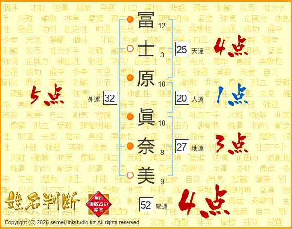 冨士原眞奈美さんの総運は52画の4点!